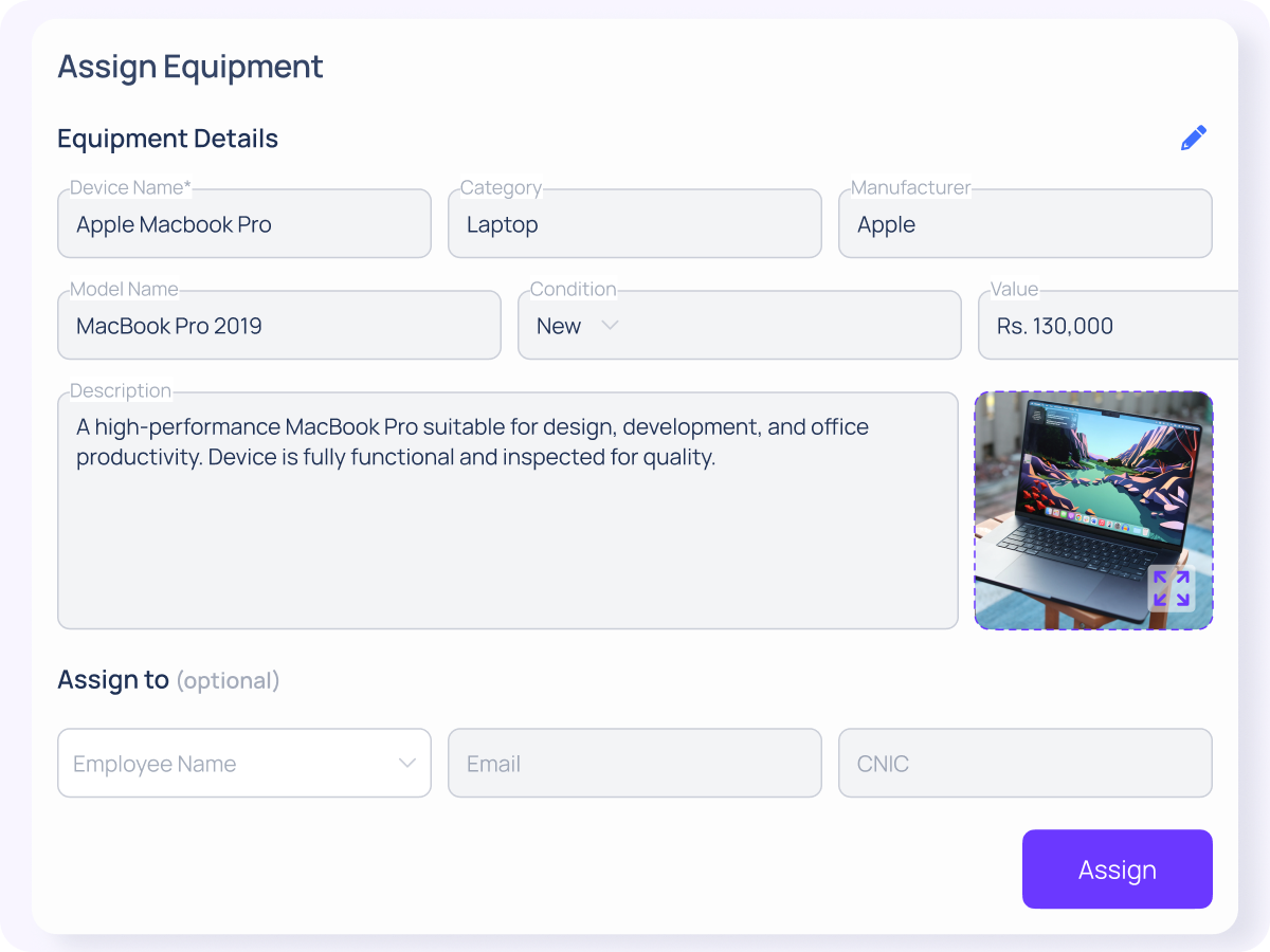 Track, assign, and manage company assets with clarity — ensuring accountability, transparency, and complete lifecycle visibility. Prevent asset loss. Improve responsibility. Maintain operational control.